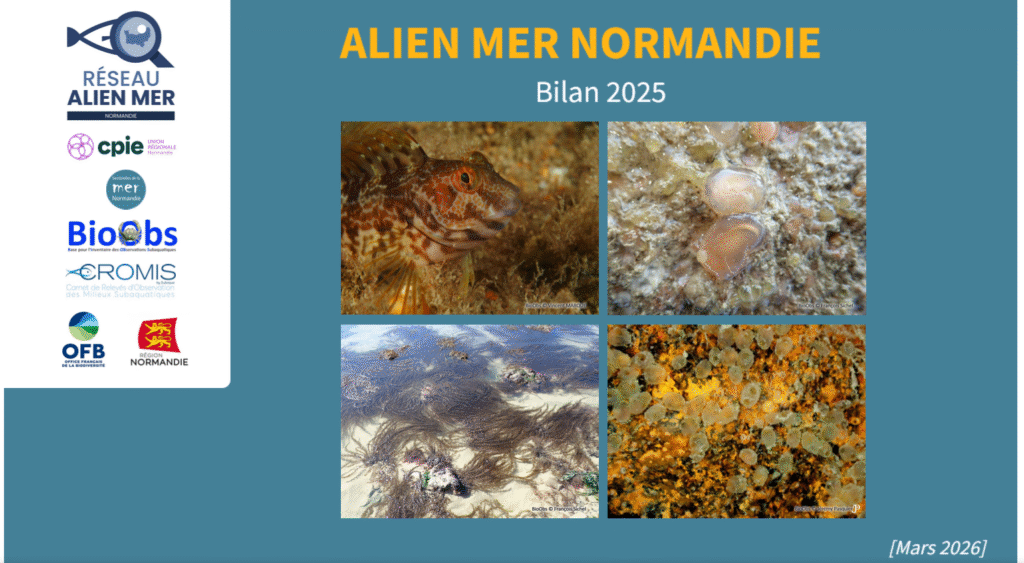 Depuis 2022, le programme Alien Mer Normandie mobilise un large réseau de plongeurs, plongeuses, naturalistes et partenaires pour suivre les espèces non indigènes marines et celles en expansion d’aire de répartition sur le littoral normand.